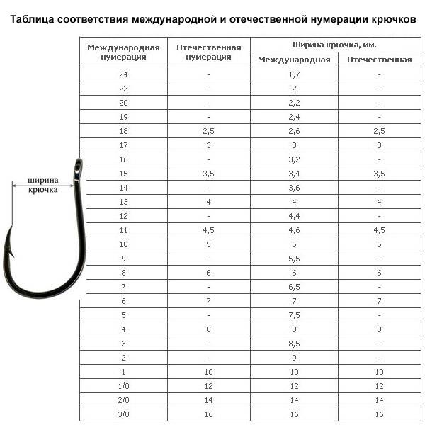 Таблица соотношения номеров крючков на карася по российской, международной, финской и японской нумерациям