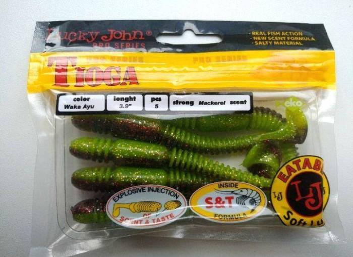 Применяют Lucky John Tioga 100 для ловли классическим джигом, оснащая разборными грузилами-чебурашками весом от 10-12 до 16 г, офсетными крючками №№ 2/0-1/0/