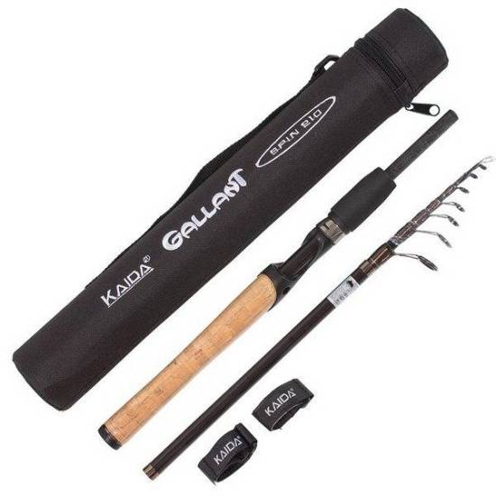 Спиннинг Kaida Gallant Spin представлен длинами от 2,1 до 2,7 метров и тестом 7-28 грамм. Спиннинг изготовлен из материала Carbon IM7 и имеет нестандартную конструкцию, совмещая штекерный и телескопический вариант. Данная модель идеально подойдет для любителей путешествий, когда есть желание взять спиннинг с собой. Спиннинг помещен в жесткий тубус, транспортная длина которого составляет всего 45 сантиметров. Kaida Gallant Spin имеет достаточно универсальный тест, который позволит проводить рыбалку разными приманками. Подойдет и для ловли на море.