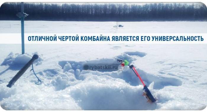 Благодаря этой снасти, рыболов получает возможность облавливать не только ограниченный участок под лункой, но также зону на расстоянии 15–20 м ниже по течению. Прикормка в этом случае не перестаёт работать, так как созданный ею шлейф может простираться на несколько десятков метров. Ловля на комбайн становится особенно актуальной в конце зимнего сезона, когда толщина льда может достигать метровой отметки и сверление каждой лунки даётся с большим трудом.