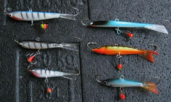 Балансиры для ловли на значительных глубинах, где обитает зубастая торпеда в глухозимье, не имеют лопастей-стабилизаторов: модели с лопатками, даже самые тяжелые, туда опустить затруднительно. Они имеют маловыразительную игру и малую дистанцию отклонения, но по пассивному хищнику это именно то, что нужно.