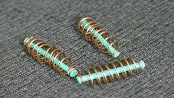- В 5-6 см от конца пружины завязывается вторая бусина.