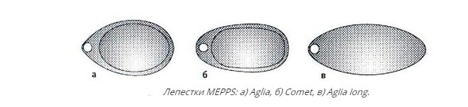 Приспособление от Мепс под названием «Комета» по внешнему виду много чем напоминает упомянутую «Аглию», и практически не уступает ей в уровне популярности. А отличие между ними состоит всего лишь в том, что у «Кометы» лепесток разукрашен точками голубого цвета разного диаметра, и вращается он, отступая от горизонтальной оси блесны на 45 градусов. Непосредственно эти особенности, по известным только щукам причинам, замечательно привлекают хищника в водоёмах.