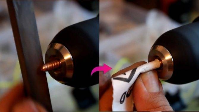 Снимаем заготовку с оси и обтачиваем торцы гравером или напильником. Затем зажимаем будущий сердечник в патроне дрели или шуруповерта и обтачиваем вращающуюся заготовку.