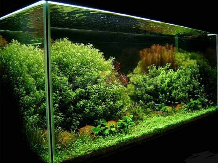 - Длинностебельные растения так же лучше располагать ближе к боковым и задней стенки аквариума.
